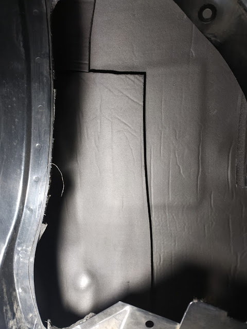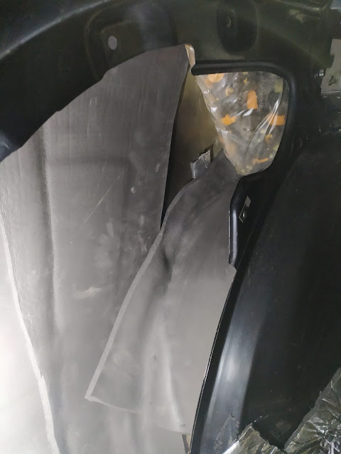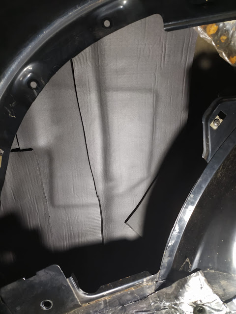 Elde malzeme bol kalınca verdim coşkuyu çamurluk içlerine 2 kat kadar uyguladım, erişebildiğim her yere yapıştırdım. Olabildiğince büyük yekpare parçalar kullanmaya çalıştım.
