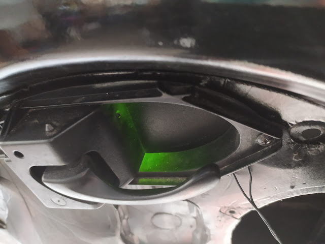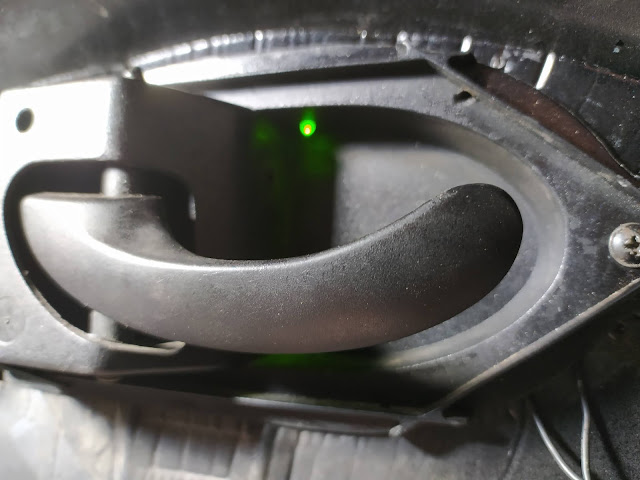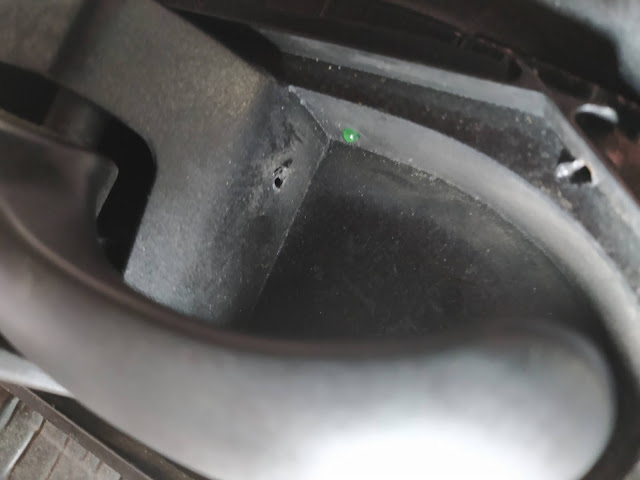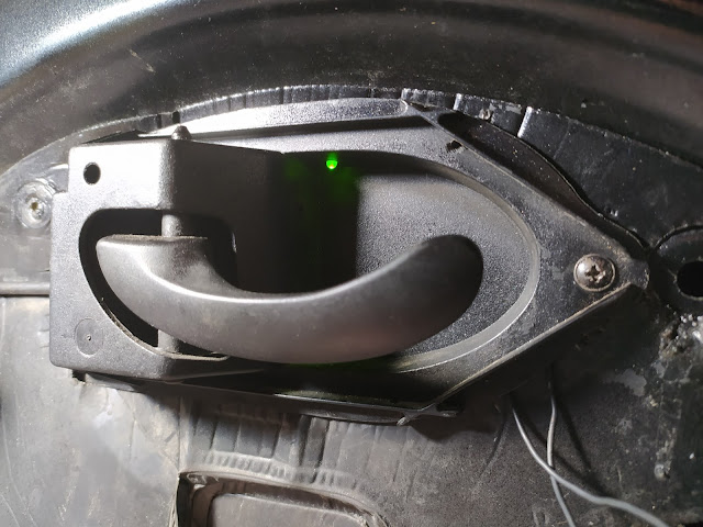 Kapı açma kolunun üst köşesinden, (Araç içinde oturan eğilip bakmadıkça görmeyecek led leri) deldim ve sıcak silikon ile sabitledim.