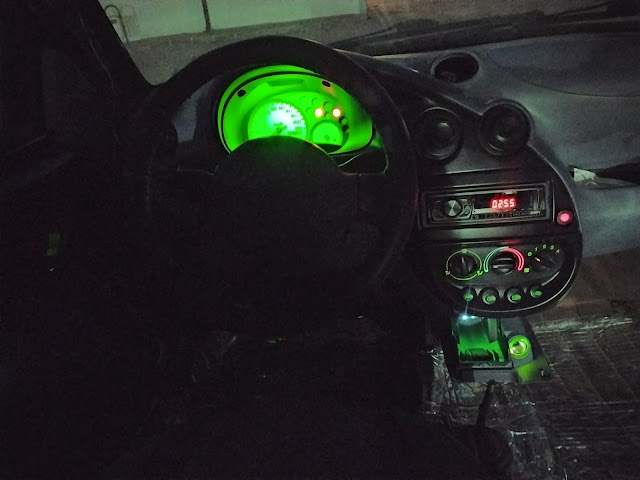 Bağlantılarını test ederken bir foto. Bunları araç cam aydınlatmalarına bağladım araç çalıştığı sürece yanıyorlar.