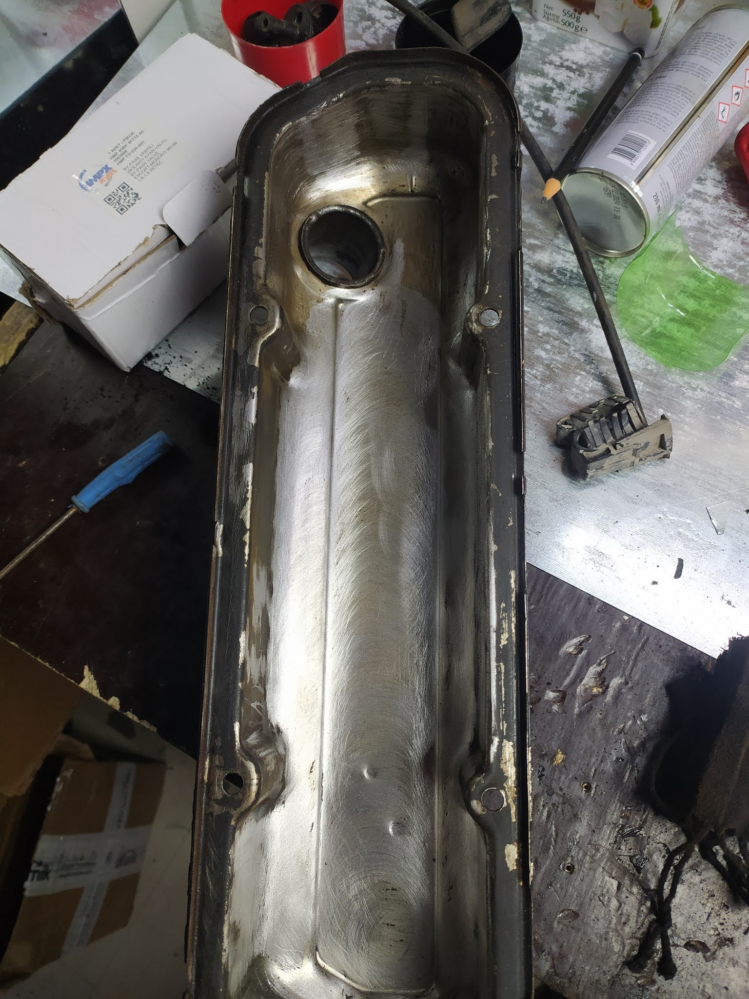 Külbütör kapağının içi oldukça kurum bağlamış, bunları birkaç farklı yöntemle olabildiğince çıkardım. Bu söktüğümdeki hali.