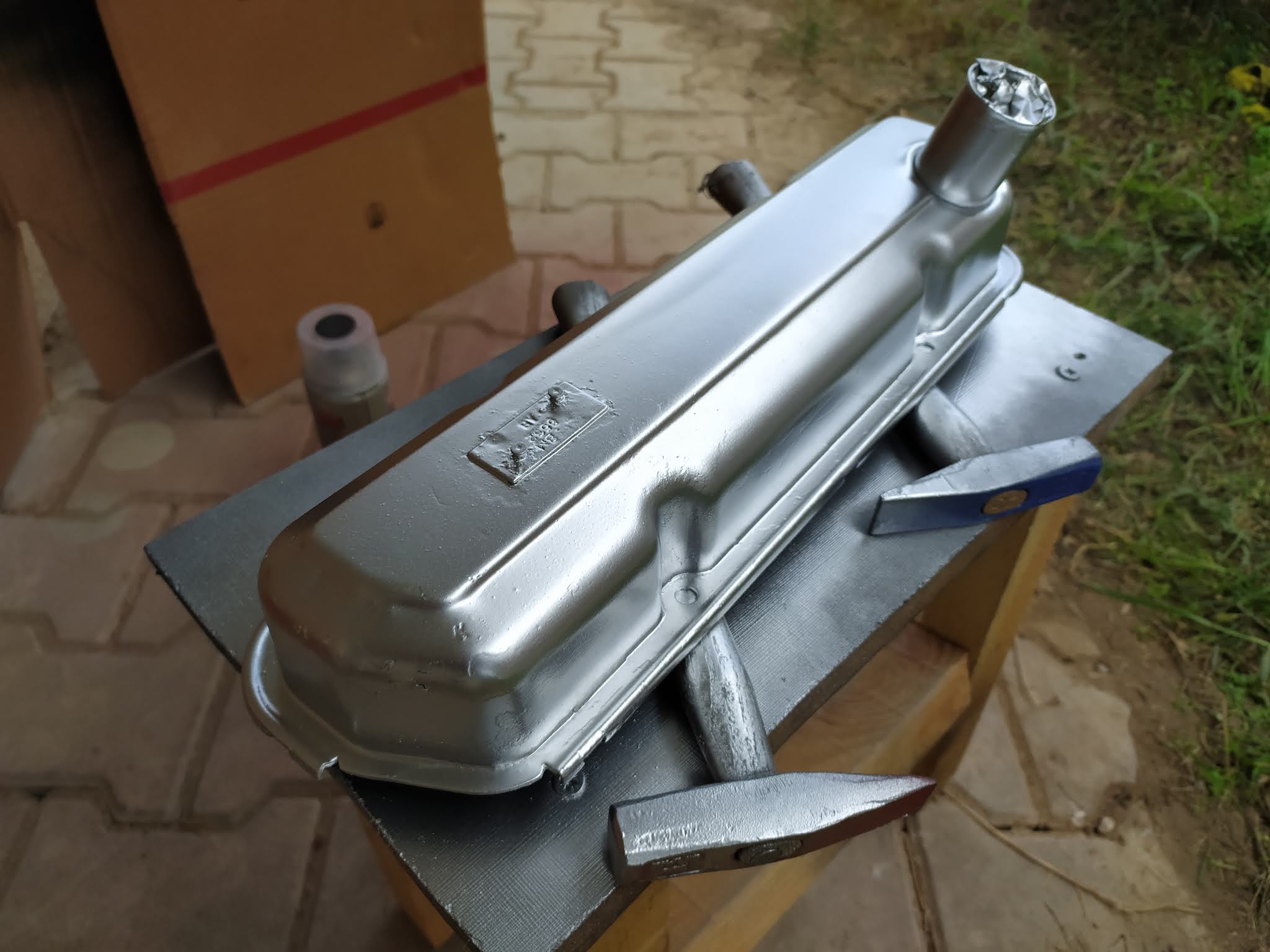 Kapağın boya öncesi hali, sanıyorum daha önce hiç boya görmemiş etiketleri üzerinde duruyor.