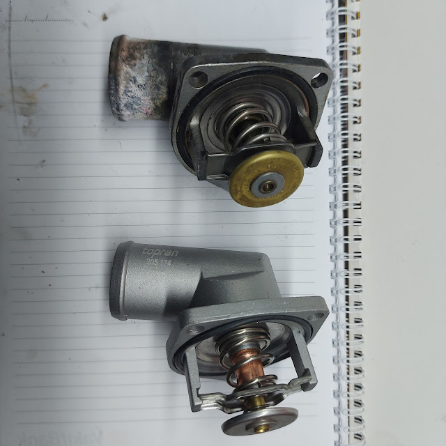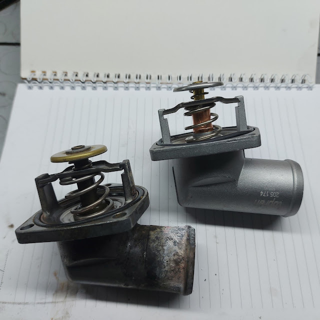 Sonra termostatı söktüm fena durumda değil ama yeni yenidir, eskisi dursun kenarda derece kontrol ettim 92 ikisi de.