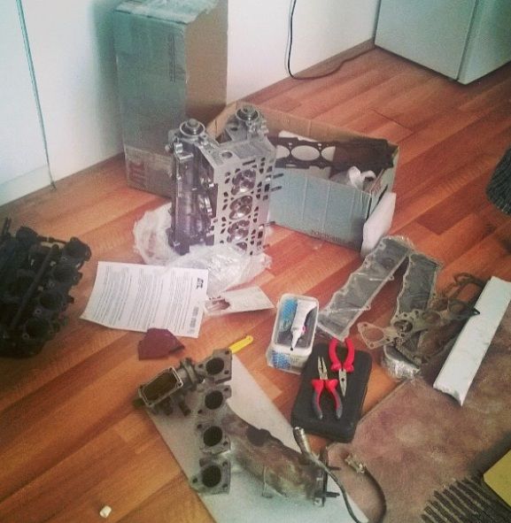 Aradan biraz zaman geçti tabi ben kendimi avutmaya devam yok artık para harcamamlar,kalsınlar derken bir gece rolle çıktım baktım keyifsiz haydi dedim biraz uğraşalım kapak,conta vs. biraz hızlasın.. Kapının önünde açtım kapağı düştüm Sarp (Kapakçı Fatih) kardeşimin yanına elimde kapak dedim yapıcam ben bunu dağıt :D