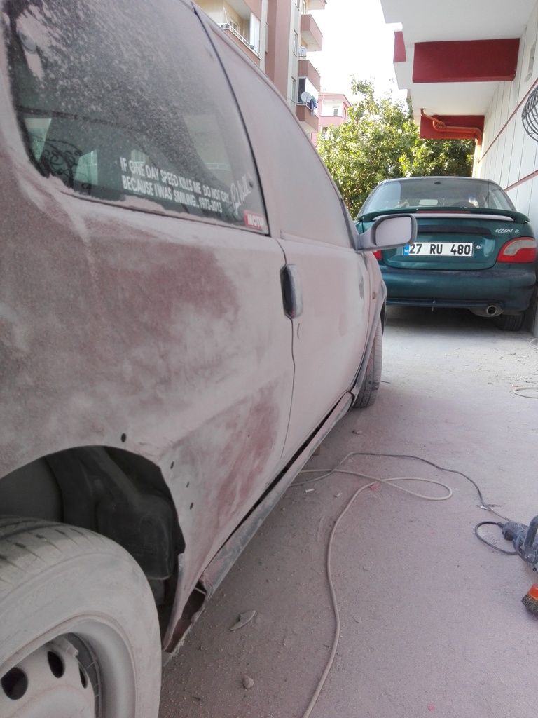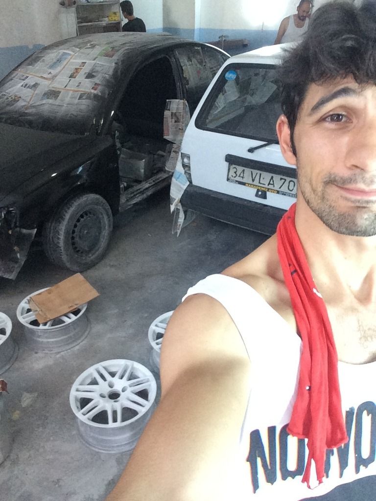 Neyse hemen başladım ben sökmeye tabi kaput,tampon,bagaj kapağı alındı.Bursa'ya yollarım dedim orda boyatırım en kötü.Askeriyede bir Uzman abimiz vardı dedi benim tanıdık boyacı var gayet güzel gel gidelim hem yakın iyi dedim yeni gelin gibiyim ama şu halinden kurtulsun yeter diyorum bi yandan da yapma etme rezil olmasın derken düştük kötü yola :D