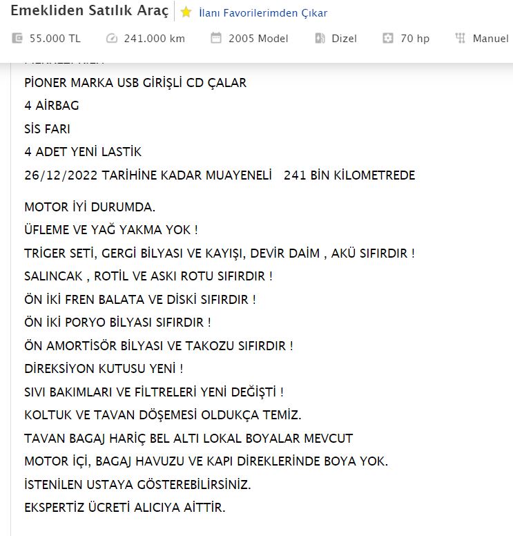 arabayı satıcaz babama(yaş 65) sordum neyi var ilana yazayım ;